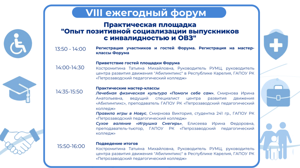 📍Форум открывается практической площадкой «Опыт позитивной социализации выпускников с инвалидностью и ОВЗ», которая пройдет 3 декабря 2025 г. в 14.00 в ГАПОУ РК «Петрозаводский педагогический колледж» по адресу: г. Петрозаводск, ул. Красная, 30А