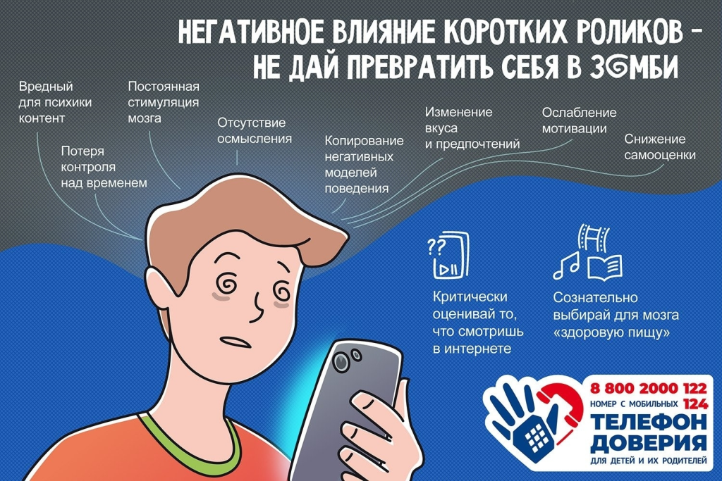 Короткие ролики очень популярны у ребят твоего возраста, скорее всего, смотришь их и ты, не задумываясь о том, какое влияние этот контент оказывает на мозг. Давай разберёмся, как именно короткие видео влияют на сознание, и почему это должно тебя беспокоить. Читайте в материале от Детского телефона доверия.