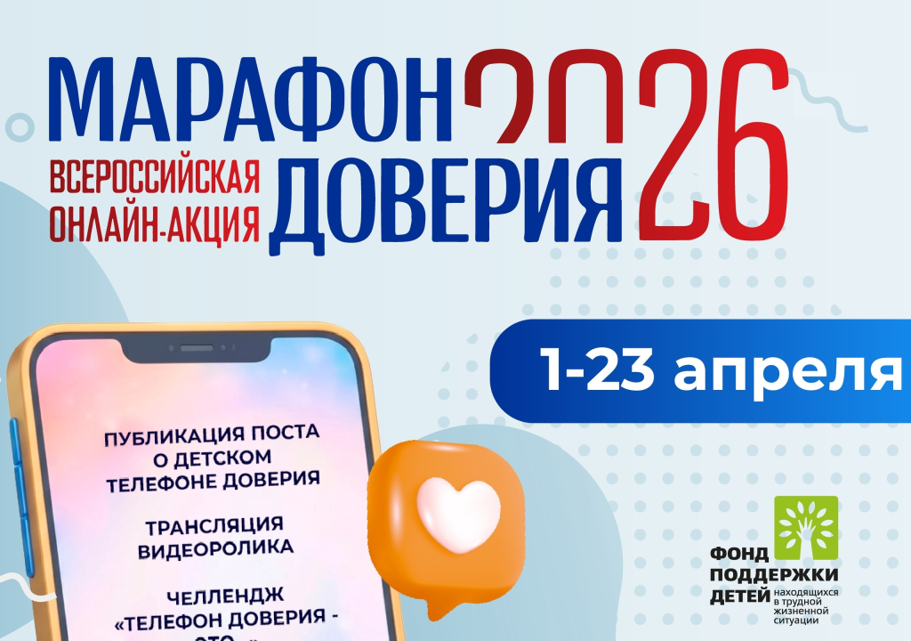 1 апреля в Республике Карелия стартует Всероссийская онлайн-акция «Марафон доверия. 2026». Онлайн-акция «Марафон доверия. 2026» направлена на повышение информированности детей и родителей о возможности получения экстренной психологической помощи по детскому телефону доверия 8 800 2000 122 и короткому номеру 124 при звонках с мобильных телефонов.