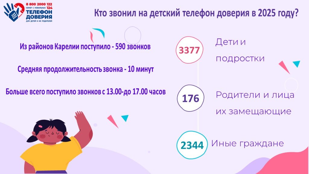 В наших карточках — статистика обращений на Детский телефон доверия в Республике Карелия в 2025 году.