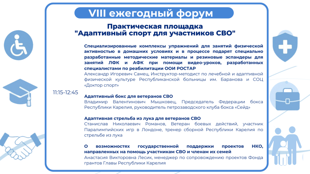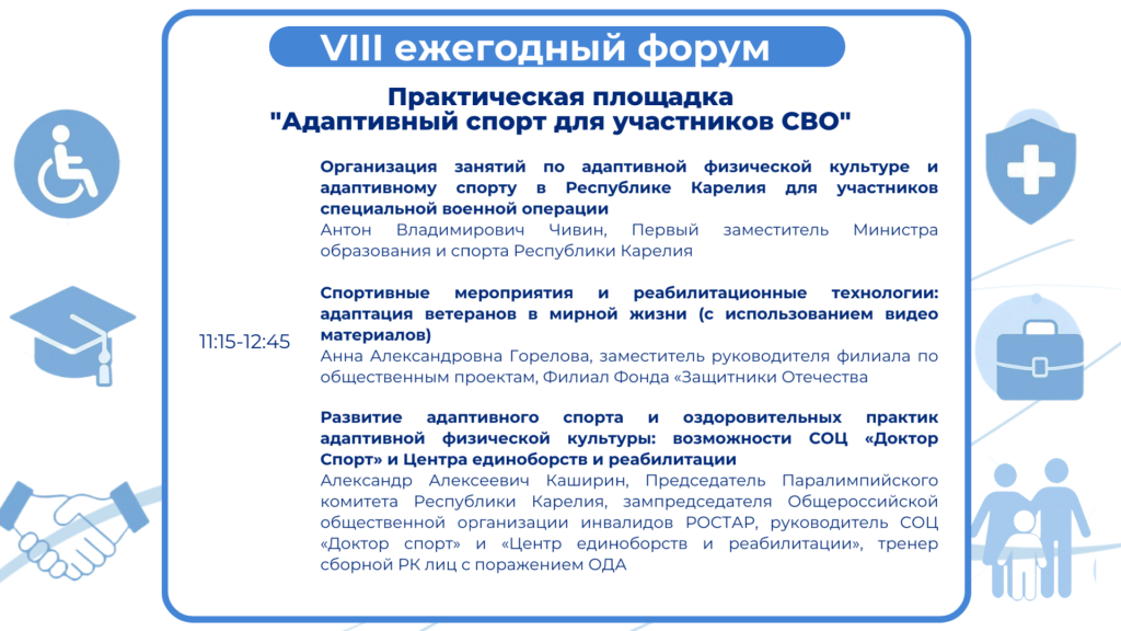 В 11.15 , в Администрации Петрозаводского городского округа (г. Петрозаводск, пр. Ленина, 2) пройдет площадка «Адаптивный спорт для участников СВО»Практическая площадка «Адаптивный спорт для участников СВО»